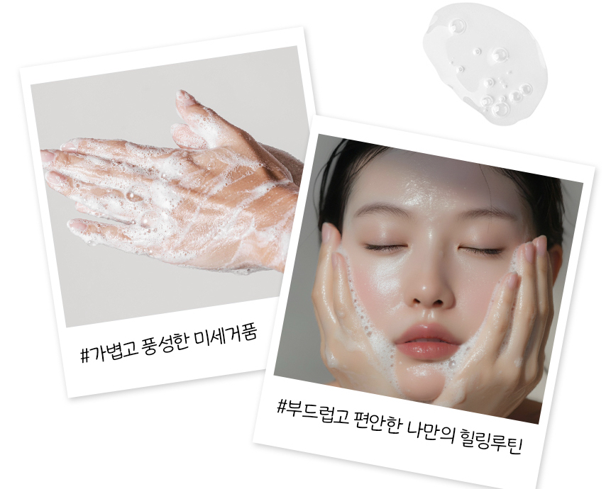 미세 거품이 피부를 자극 없이 감싸 세안해 줍니다.